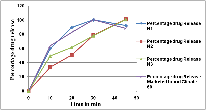 | Time in min | N1 | N2 | N3 | Marketed brand glinate 60 |