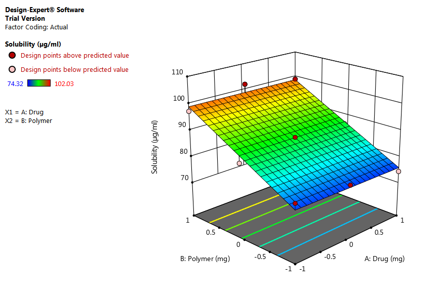| Std | Run | A: Drug | B: Polymer | Solubility (µg/ml) | % Dissolution | |