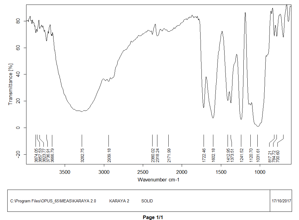 Fig. 9: FTIR spectrum of extracted karaya gum