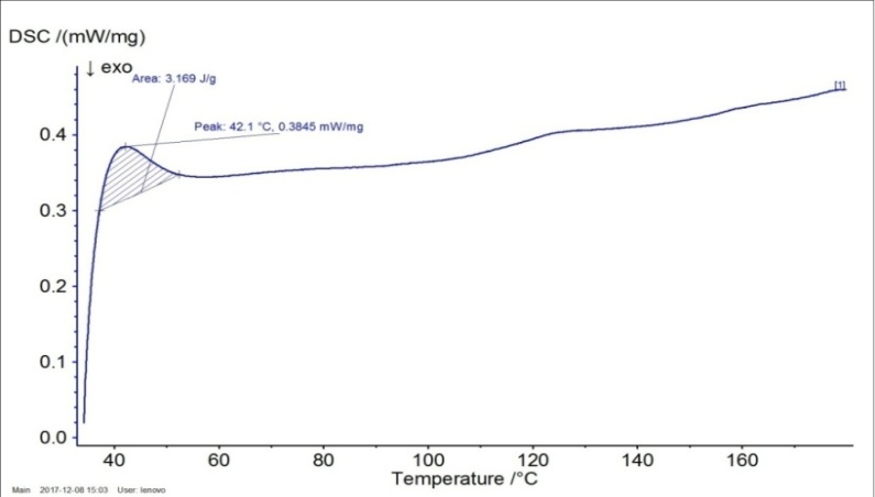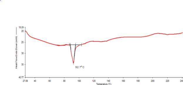 Differential Scanning Calorimetric thermogram of karaya and grafted karaya was recorded by using differential scanning calorimeter in the temperature range of 40 °C-250 °C at a heating rate of 10 °C per minute in nitrogen atmosphere [20].