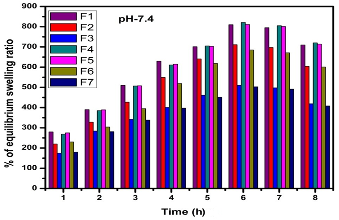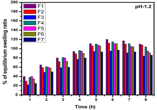 The swelling behavior of different formulations was determined gravimetrically under both pH 1.2 and pH7.4.