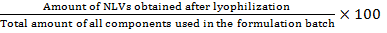 To determine the % yield of each formulation batch, the fully dried CNLVs obtained after lyophilization was weighed after each batch run [15]. The % yield was calculated by applying following equation.