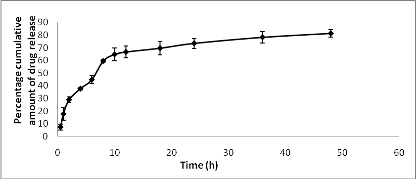 Fig. 4: In vitro drug release optimized formulation (CNLV-2). Data show mean±SD (n =3)
