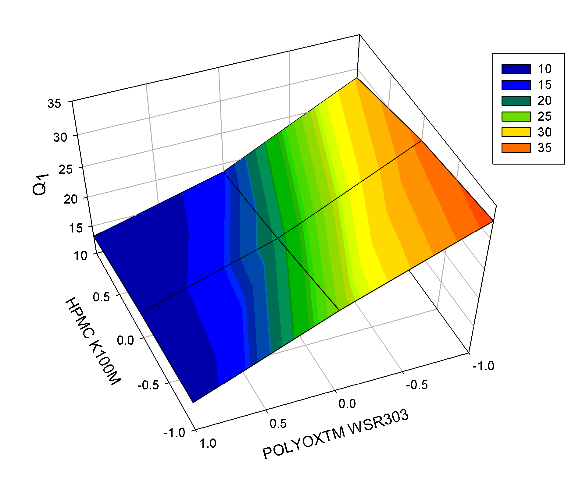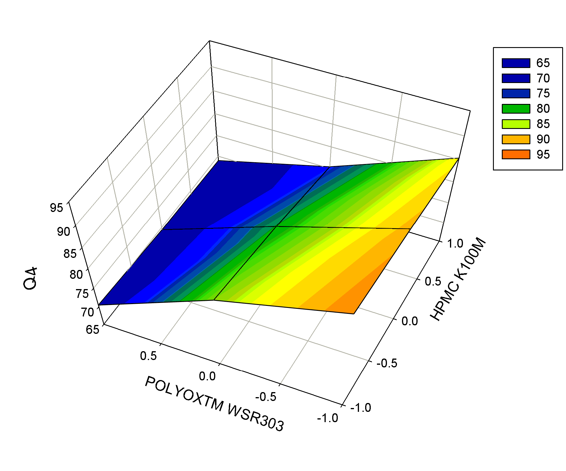 HPMC K100M (X1) | POLYOXTM WSR303 ® (X2) | Q1 (Y1) | Q2 (Y2) | 4Q4 (Y3) | Q6 (Y4) |