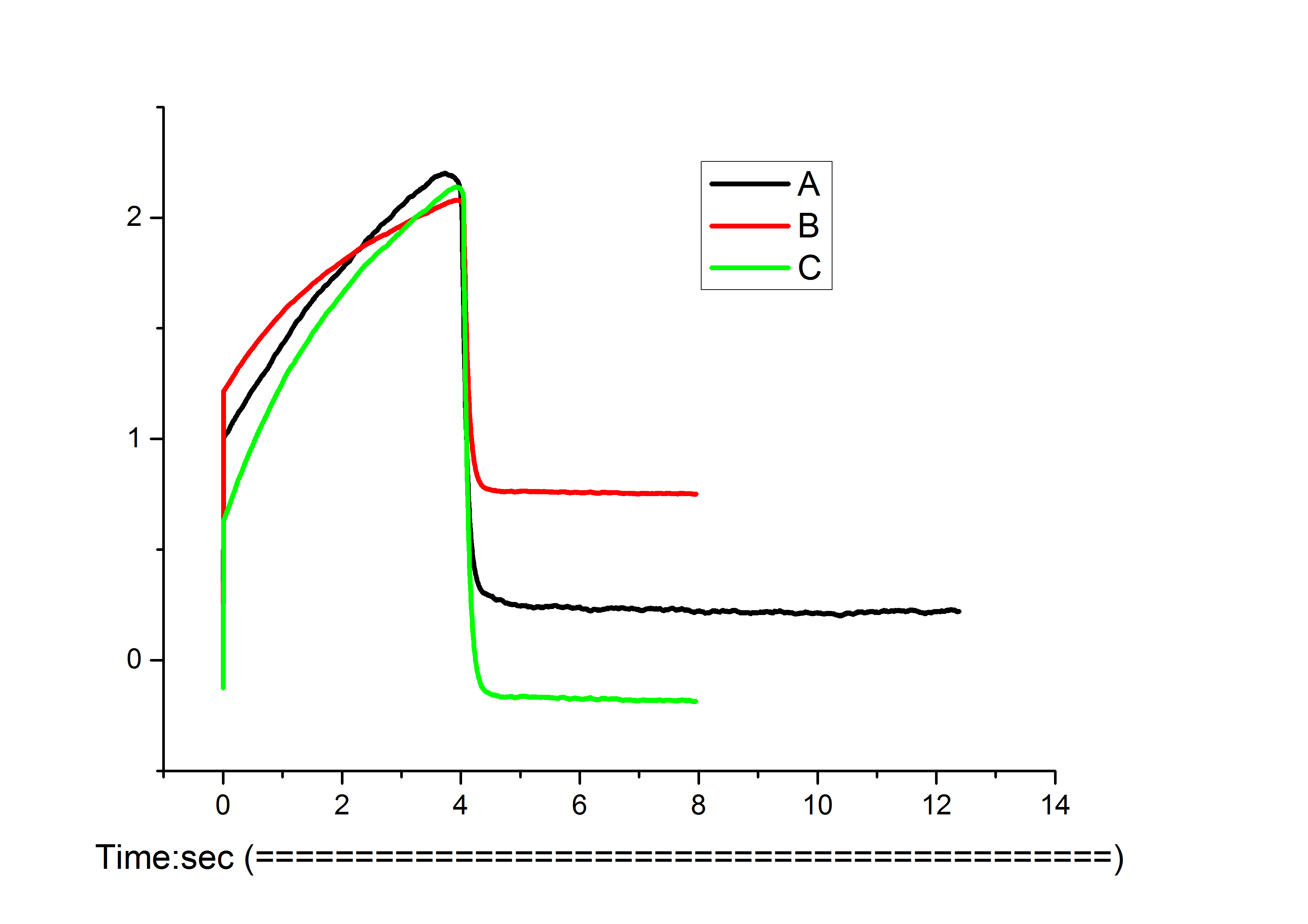 Fig. 7: Tensile strength of (A) aerogel No. 14 (APE type 2, weight of 1.5 and 24 h solvent exchange time); (B) aerogel No. 9 (APE type 1, the weight of 1.5 and 36 h solvent exchange time); and (C) (A) aerogel No. 12 (APE type 2, weight of 1.5 and 48 h solvent exchange time), APE: Arenga pinnata endosperm