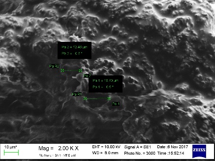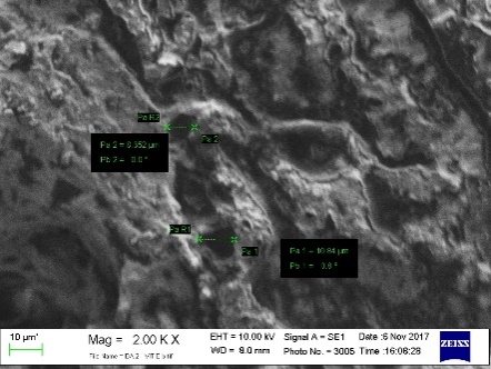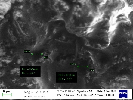 The SEM analysis was used to study the surface morphology of the APE and the aerogel products containing vitamin E. Fig. 5 shows the morphology of APE aerogel surface and APE+vitamin E aerogel. The aerogel made from APE type 1-3 (A-C) with a concentration of 1.25% (w/v) and solvent exchange time of 36 h showed a fibrous, rough and hollow surface[1]. The surface after being added with vitamin E provides a smoother surface where the cavity has been covered by vitamin E. Therefore, it can be concluded that the aerogel could entrap vitamin E given the possibility to protect active compounds from the unnecessary environment.