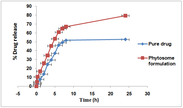 Fig. 12: Drug release profile of selected phytosome formulation F3 (mean±SD, n=3)