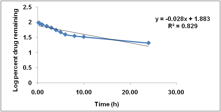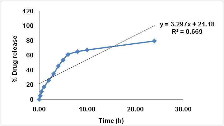 In the current study, the in vitro release studies of the formulation was analyzed by this process, the data of the prepared formulation was placed in different equations and determine the kinetics model and percentage release of optimized formulation of phytosome. Thus, The kinetic models were used for determine the percent release of drug as well as by Zero-order equation, First-order, Higuchi’s model and Korsmeyer-Peppas equation.