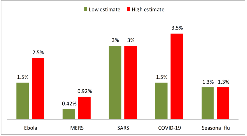Wu JT, Leung K, Bushman M, Kishore N, Niehus R, de Salazar PM, et al. Estimating clinical severity of COVID-19 from the transmission dynamics in Wuhan, China. Nat Med 2020;26:506-10.