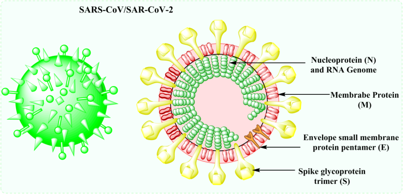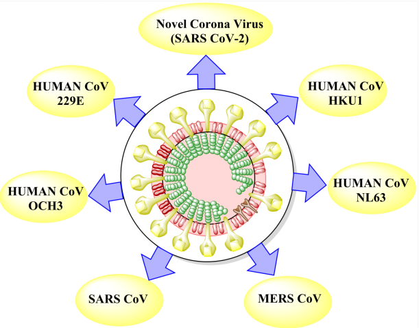 The SARS-CoV-2 is an envelope, spherical shape, single-stranded plus sense RNA (Ribonucleic acid) virus with helical symmetry belonging to beta coronaviruses of Coronaviridae. The virus has peplomers made up of glycoprotein projected over the envelope in a manner of crown (hence named corona), and these spike proteins help in binding with receptors present in the body of animals (bats, rodents, civets, cats, malayan pangolins, camels, among other potentially competent hosts) and humans. Modifications at the level of spikes on receptor binding ligands are responsible for zoonotic spillover and crossing of the species barrier. As per high genomic similarities, it is suggested that SARS-CoV-2 (Severe acute respiratory syndrome coronavirus-2) producing COVID-19 in humans has its origin from bats as it acted as natural ancestral host. Fig. 3 shows various strains of coronaviruses affecting human population till date [13-16].