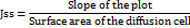 It is defined as the amount of substance passing through a unit cross-sectional barrier in unit time. It was determined from the slope of the plot of the percentage of drug transported versus time, and it was calculated by, dividing the slope of the linear portion of the plot by the surface area of the diffusion cell.