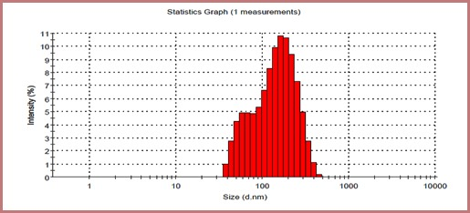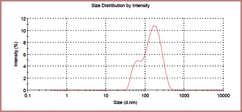 The size of nanoproniosomal gel plays a vital role in drug release; hence it is an important parameter to be determined. The vesicle size and the PI value of the best formulation were determined as 185.2 nm and 0.492 (which indicates very broad distribution). Zeta potential measurement is very important because it indicates the stability of vesicles. The high value of zeta potential (more than±30 mV) shows greater repulsion between charged particles, which reduces aggregation or flocculation and enhances the stabilization of vesicles. The Zeta potential of the best formulation was found to be-84.0 mV and reported as excellent stability. The vesicle size and potential zeta graphs were shown in fig. 13 to 15. The results were in good accordance with Ali Nasr et al. (2018) who described that particles with zeta potential values more than (+30 mV) or less than (-30 mV) are considered stable and negative values indicate the formation of stable systems [36].