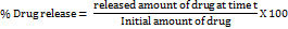 The % drug release values are expressed as mean±SD=standard deviation from mean, n=3