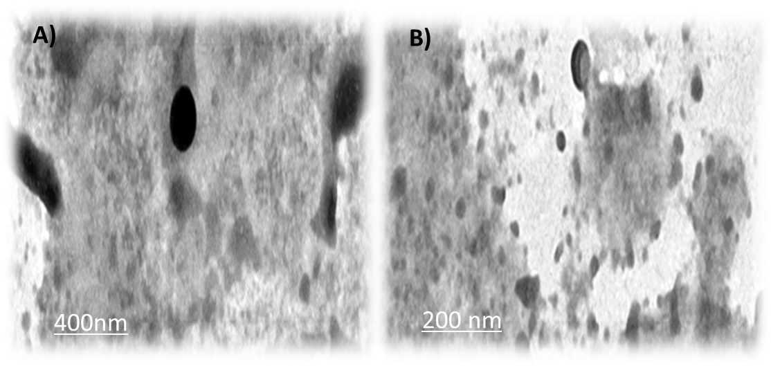 Fig. 2: Transmission electron micrographs of SLN A) F12, B) F5