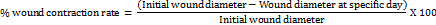 The wound epithelialization period was determined by measuring the wound contraction using Vernier Caliper. The epithelization period was measured with the help of the wound contraction rate, which is expressed below.