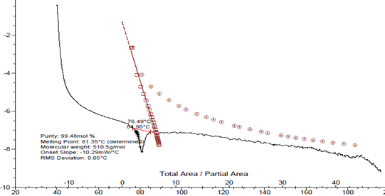 DSC measurements were carried out on DSC Q10 V9.9 Build 303 to investigate the thermal behavior of samples. This technique is used to study the thermal transition of a polymer. For example, the melting point of a crystalline polymer, glass transition and crystallization temperature. The samples (2 mg) of individual substances i.e. CFA, β-CD and complexes, were weighed and thematically sealed in flat bottomed aluminum pan with crimped on the lid. The pan was placed on the sample holder and an empty pan was placed on the reference pan holder of DSC apparatus. The samples were heated in an atmosphere of nitrogen gas bypassing it at 60 ml/min flow rate over a temperature range from 40-300 °C [33, 34].