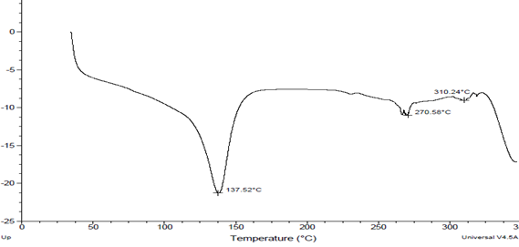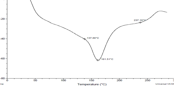 The complexes showed the shifting of the endothermic peak in all the thermogram, confirming the development of inclusion complexes. The sharp endotherm got converted to broad endotherm and shifted to its right as shown in fig. 7 [51].