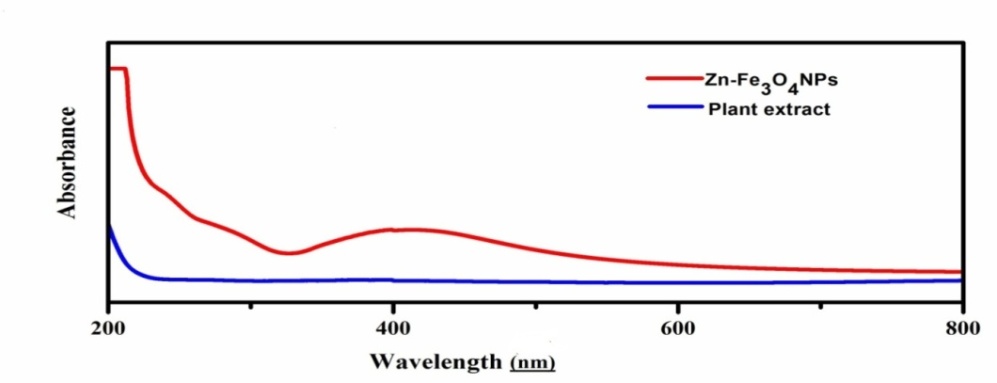 Fig. 2: Ultraviolet-visible absorption spectra of plant extract (AP) extract and Zn-Fe3O4NPs