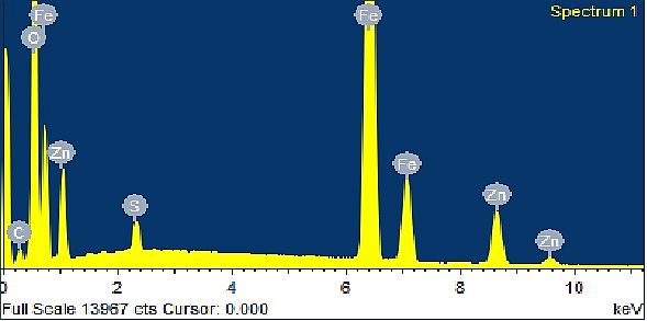 Fig. 8: EDX spectra of synthesized Zn-Fe3O4NPs