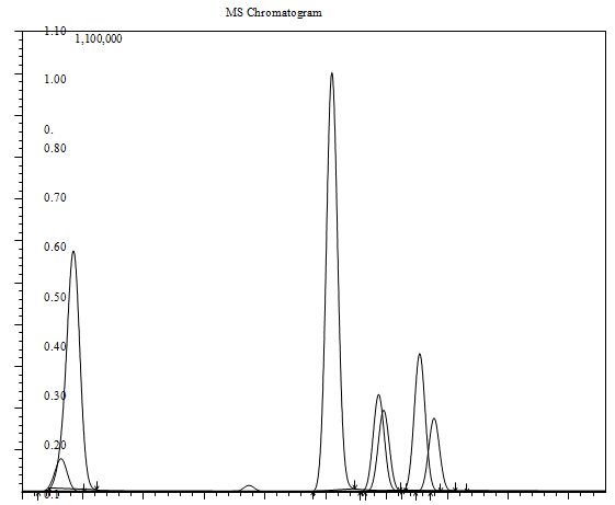 Fig. 1: Total ion chromatogram (TIC) obtained by LC-MS/MS (ESI positive mode) for blank okra samples fortified at 500 ppb