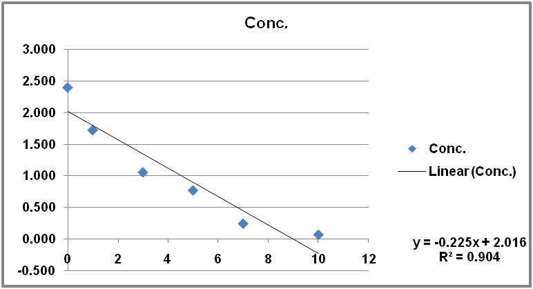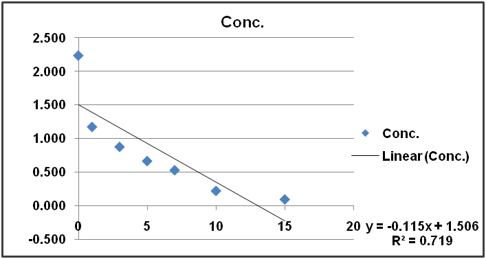 Fig. 2: Semi logarithmic graph showing dissipation pattern of carbendazim in Okra
