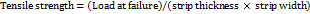 It was determined using a laboratory fabricated tensile strength tester. A 3×3 cm2 film free from bubbles or physical imperfections was held longitudinally in the tensile grip on the tester. The test was performed at 6 mm of initial grip separation. Weights were added to the pan until the film breaks. All measurements were recorded in triplicate. Mean with standard deviation was calculated [27]. Tensilestrength was calculated by dividing the applied force at which the film is broken by the cross-section area of the strip and was expressed in force per unit area: mega Pascal (MPa) as shown in the following equation.