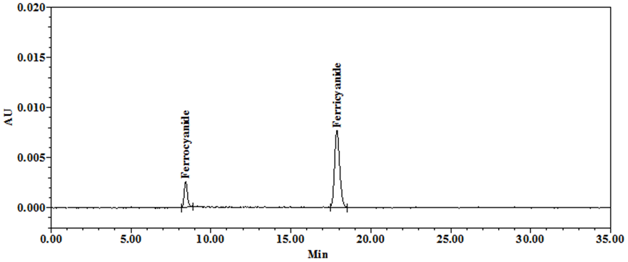 Fig. 3: Representative chromatogram of standard-2 containing ferricyanide and its redox counterpart ferrocyanide