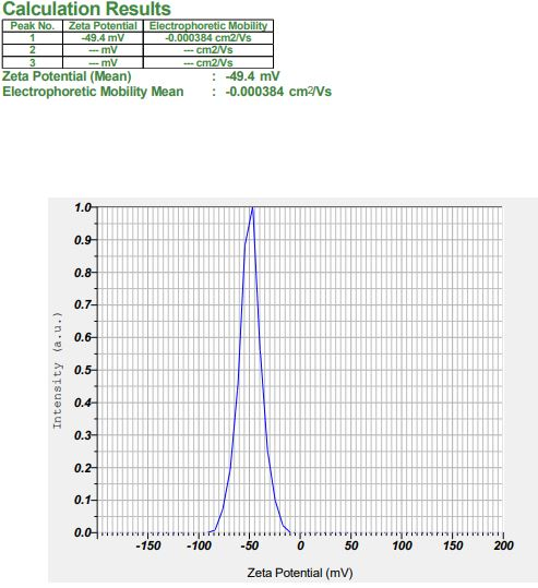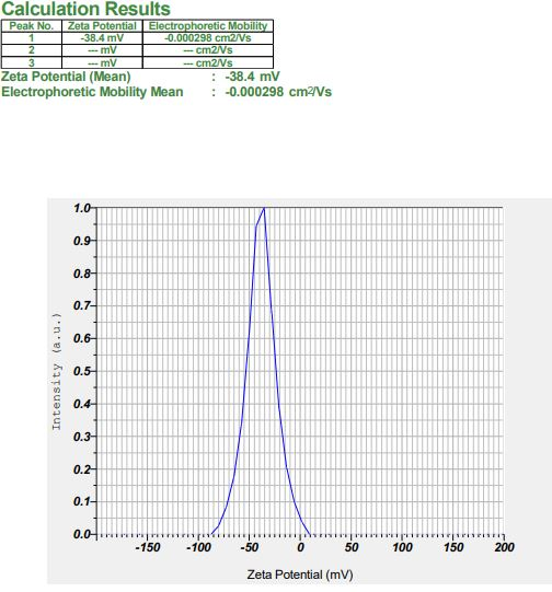 Zeta potential is a major characterization required for nanoparticles to approximate its surface charge. It is an essential parameter in the physical stability of NLC. The zeta potential quantification was carried out by SZ-100 HORIBA scientific using the principle of electrostatic light scattering. The samples diluted with double distilled water were placed in the zeta measurement cell. The electrophoretic mobility of the nano dispersion was measured using laser Doppler velocimetry.