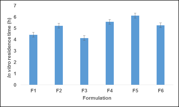 Fig. 2: Comparison of in vitro residence time of all formulations