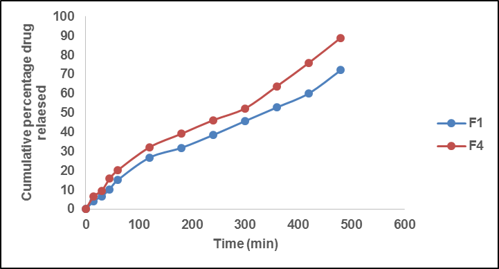 Fig. 4: In vitro drug release profiles from F1 and F4