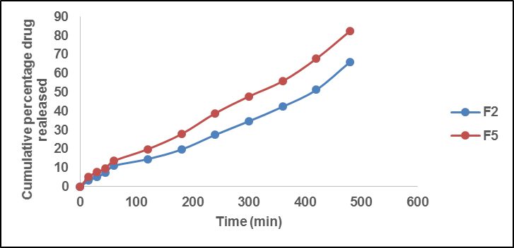 Fig. 5: In vitro drug release profiles from F2 and F5