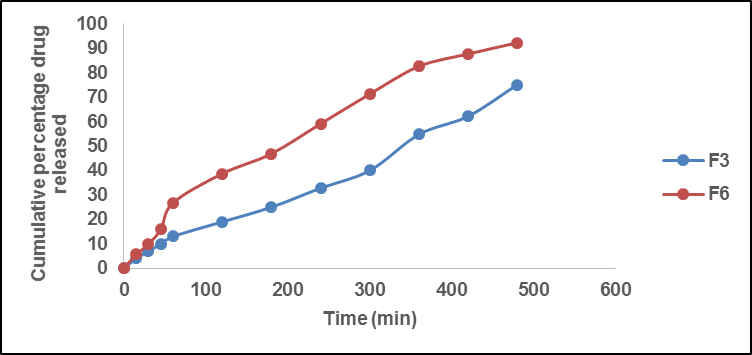 Fig. 6: In vitro drug permeation profiles from F3 and F6
