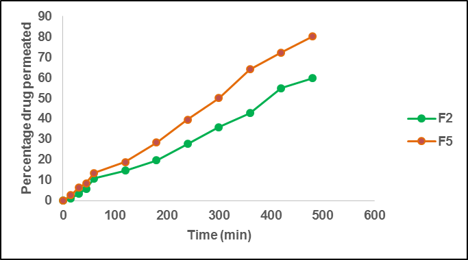 Fig. 7: Ex vitro drug permeation profiles from F2 and F5