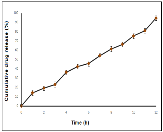 Fig. 9: In vitro drug release of optimized formulation DT8 (mean±SD N=3)