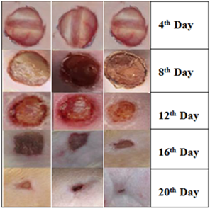 The dropping of scab deserting no raw wound was taken as the endpoint of complete epithelization and the days required for this were taken as an epithelization period [28].