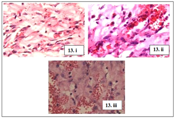 Fig. 13: Histopathology of regenerated tissue of open wounds i. Group 1 ii. Group 2 iii group 3