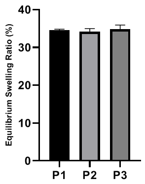 Fig. 2: Equilibrium swelling ratio (mean±SD, n=5) of P1, P2 and P3 in PBS