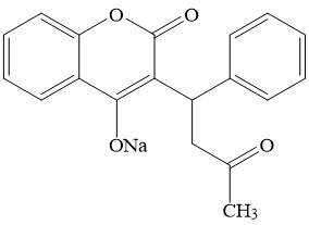 Warfarin is a colorless, crystalline compound with a melting point of 151-161 °C. It is practically insoluble in water, readily soluble in acetone and dioxane, and moderately soluble in alcohols. The sodium salts are soluble in water but insoluble in organic solvents [1]. Warfarin is the most used oral anticoagulant; it prevents the formation of active coagulation factors II, VII, IX, and X in the liver by inhibiting the synthesis of coagulation factors [2]. The drug is indicated in the prophylaxis and treatment of venous thrombosis and pulmonary embolism, as well as in the prophylaxis and treatment of thromboembolic complications associated with atrial fibrillation and prosthetic valves [3]. Molecular structure of warfarin sodium is shown in fig. 1.