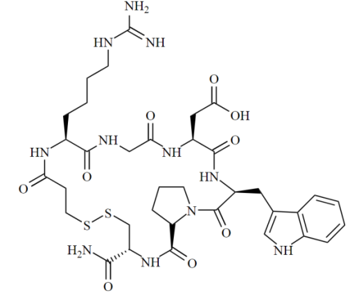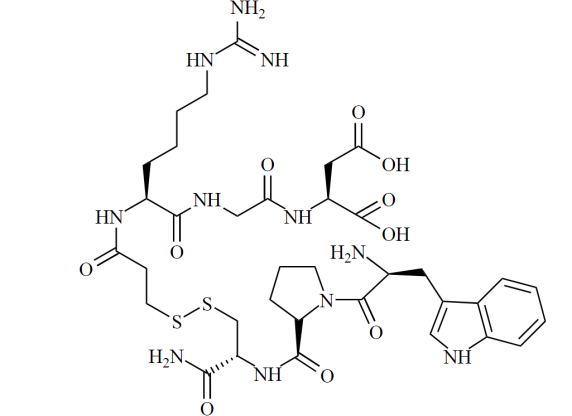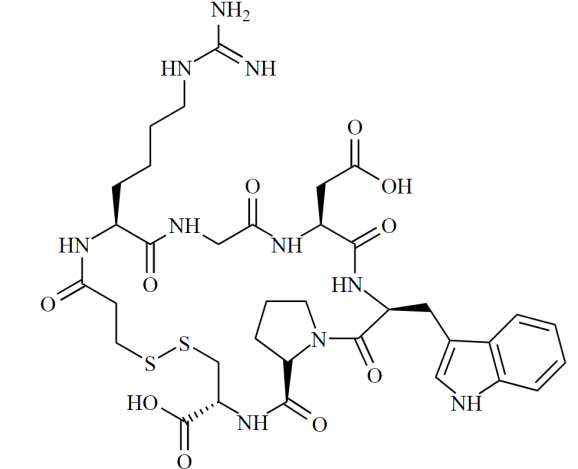 Eptifibatide is an antiplatelet drug and a disulfide-linked cyclic peptide and a short-acting reversible inhibitor of platelet aggregation [1]. It is used for the treatment of myocardial infarction, acute coronary syndrome, intracoronary stenting and for patients undergoing percutaneous coronary intervention [2]. The enhanced antiplatelet or thrombosis effect of Eptifibatide is usually coupled with naturally accompanying aspirin and/or heparin therapy [3]. The molecular structure of Eptifibatide was given in fig. 1.