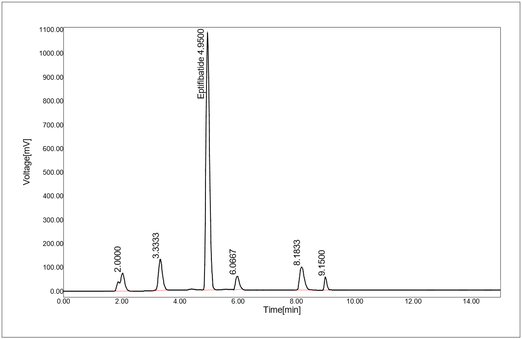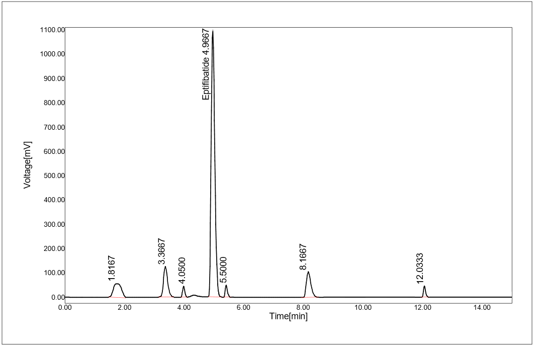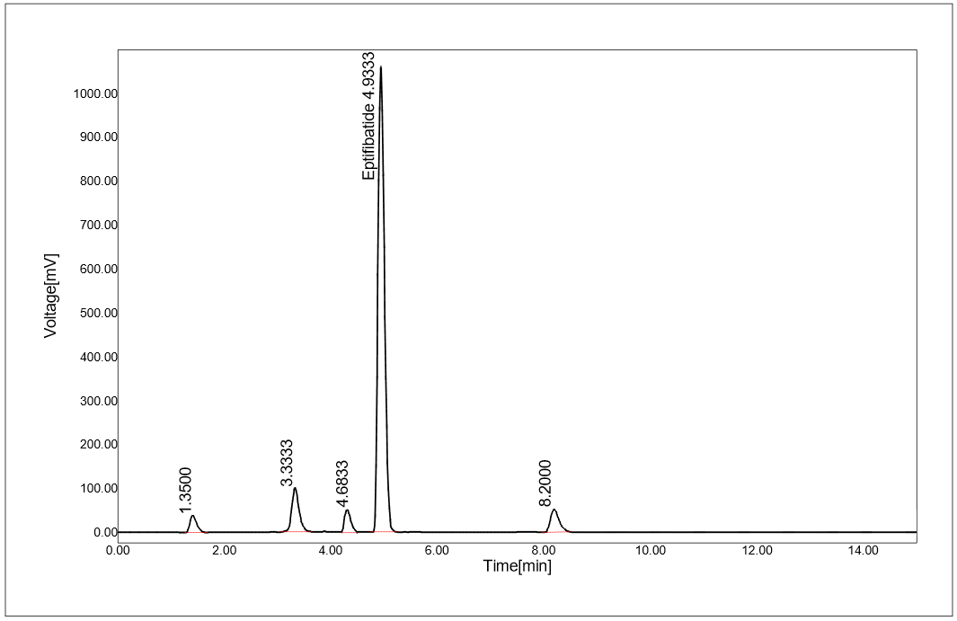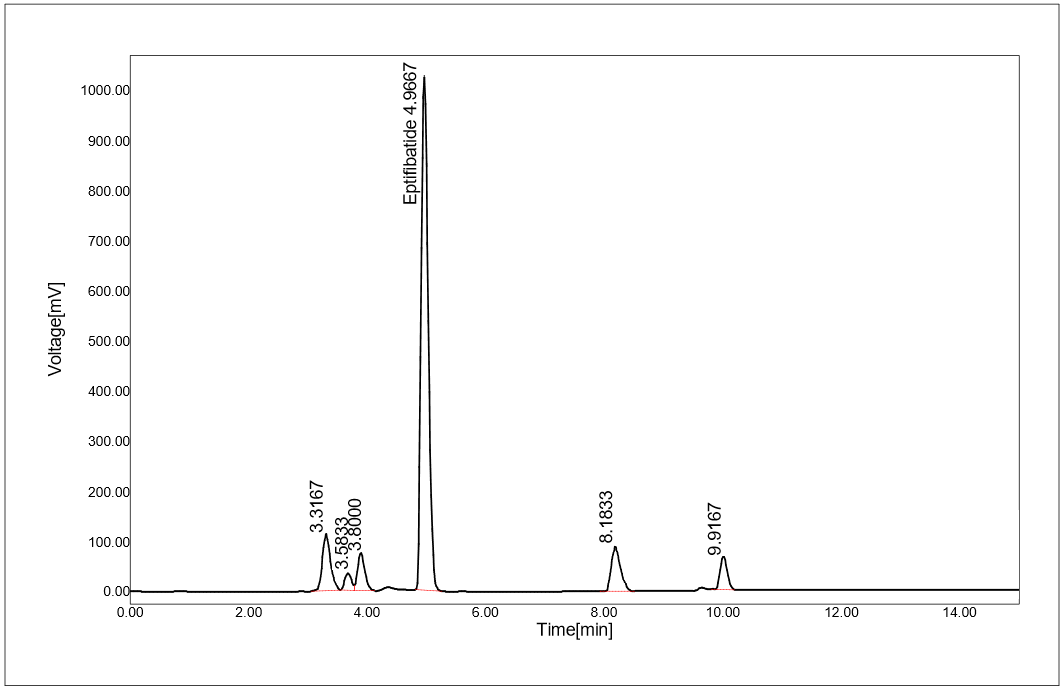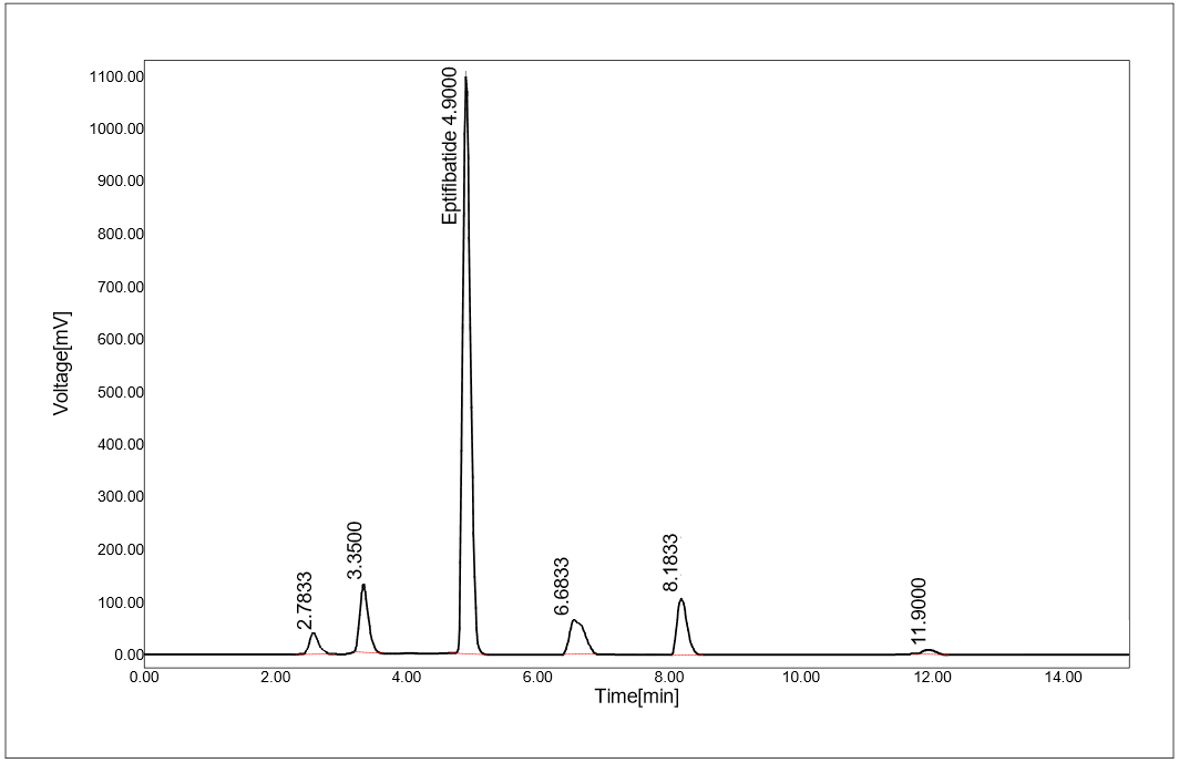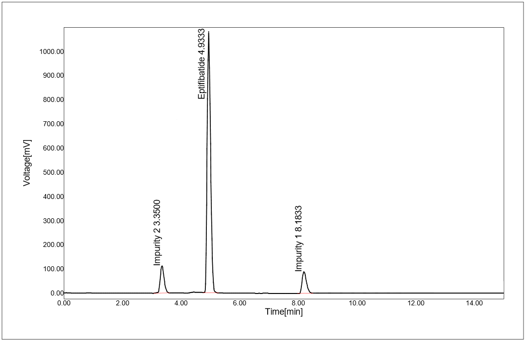 Conclusion: The developed method was found to be suitable for the quantification of Eptifibatide and can separate and analyse impurities 1 and 2.