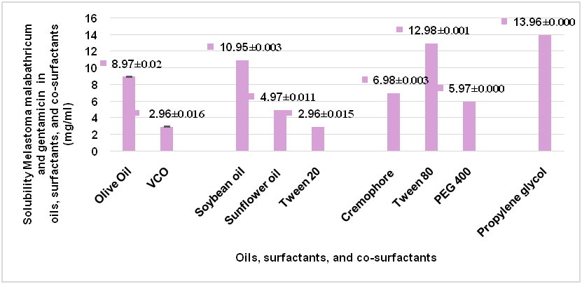 Melastoma malabathricum fractions and gentamicin (MFG) solubility measurements in surfactants, Co-surfactants, and oils