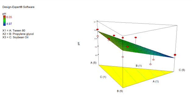 Y = pH, A: Tween 80, B: Propylene glycol, C: Soybean Oil.