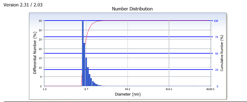 The nanospray droplet size observations were carried out to ascertain the nm size of the nanospray droplets. Fig. 6 shows the particle size distribution.
