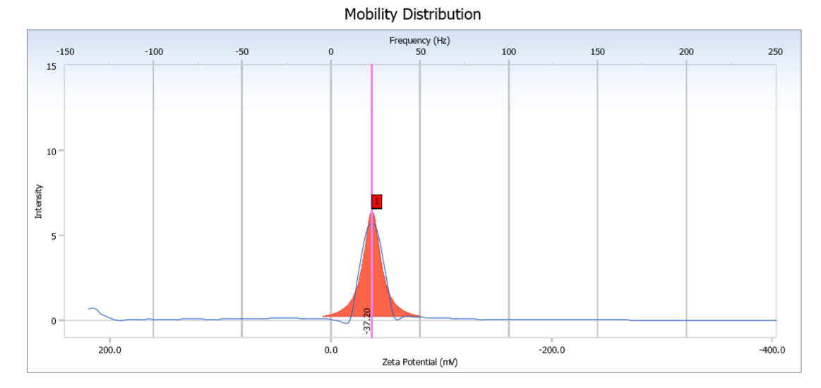 Fig. 7: Observation of zeta potential of nanospray droplets in combination with Melastoma malabathricum and gentamicin