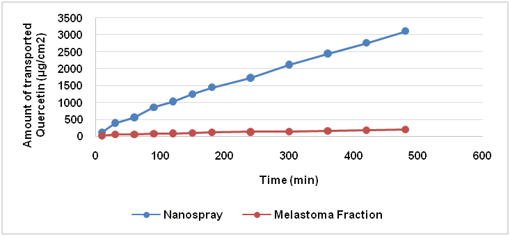 Fig. 8: Amount of quercetin transported on nanospray preparations and Melastoma malabathricum fraction