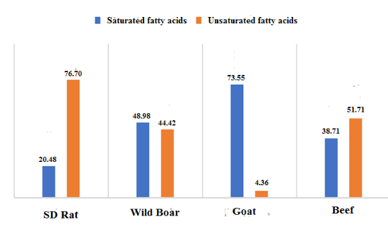 Comparison of Sprague Dawley rats, boars, goats, and cows fatty acid