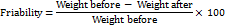 Tablet friability is an essential factor for the tablet to withstand attrition in the package container because of chipping and powdering or fragmentation of the tablets during handling and shipping. It can adversely affect the tablet appearance, acceptance, weight variation and content uniformity [12]. Friability test evaluates the impact of transporting tablets from the manufacturer to the point of sale, as no sample is assumed to lose more than 1% of its weight after testing to withstand rough handling and transportation through potholed roads [13]. In order to carry out this process, twenty tablets of each levofloxacin 500 mg brand were weighed initially and then subjected to abrasion using a Friabilator. The Friabilator was set to make 100 revolutions in 4 min. Later on, the tablets were removed from the Friabilator and reweighed again after dusting. The friability was calculated by measuring the difference in weight according to the following equation [14]: