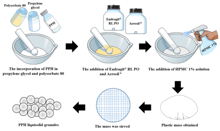 Fig. 2: Illustration of the steps in the formulation of PPH liquisolid