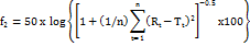 Where n is the number of sampling time, Rt is the reference dissolution percentage at time t, and Tt is the test dissolution percentage at time t. Two dissolution profiles are considered similar if the value of f1 is lower than 15 (in the range of 0-15) and the value of f2 is more than 50 (in the range of 50-100).