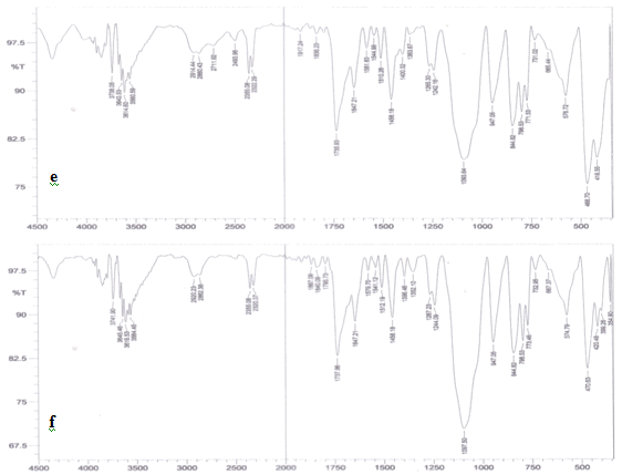 Fig. 3: FTIR spectra of (a) propranolol hydrochloride, (b) F1, (c) F2, (d) F3, (e) F4, and (f) F5, respectively
